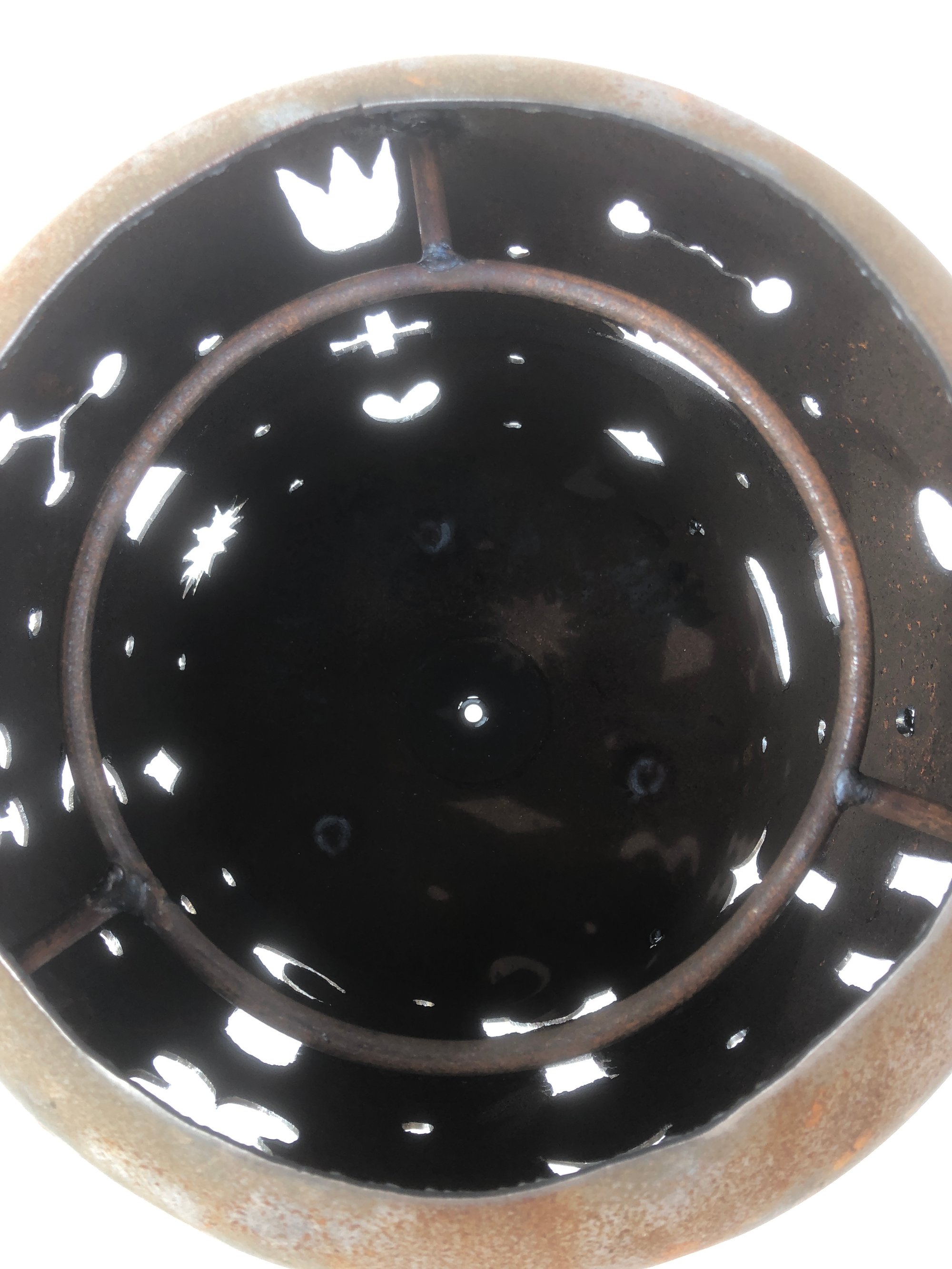 Dans ce brasero on peut choisir un symbole et y fourrer une petite branche de bois sec pour voir des étincelles s'élever dans la nuit étoilée.