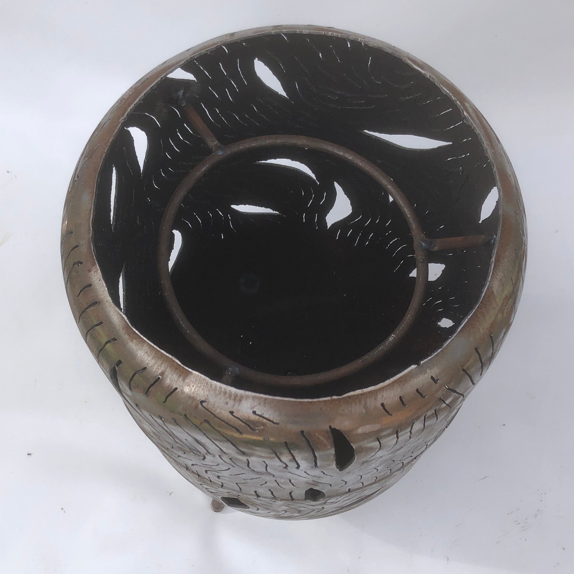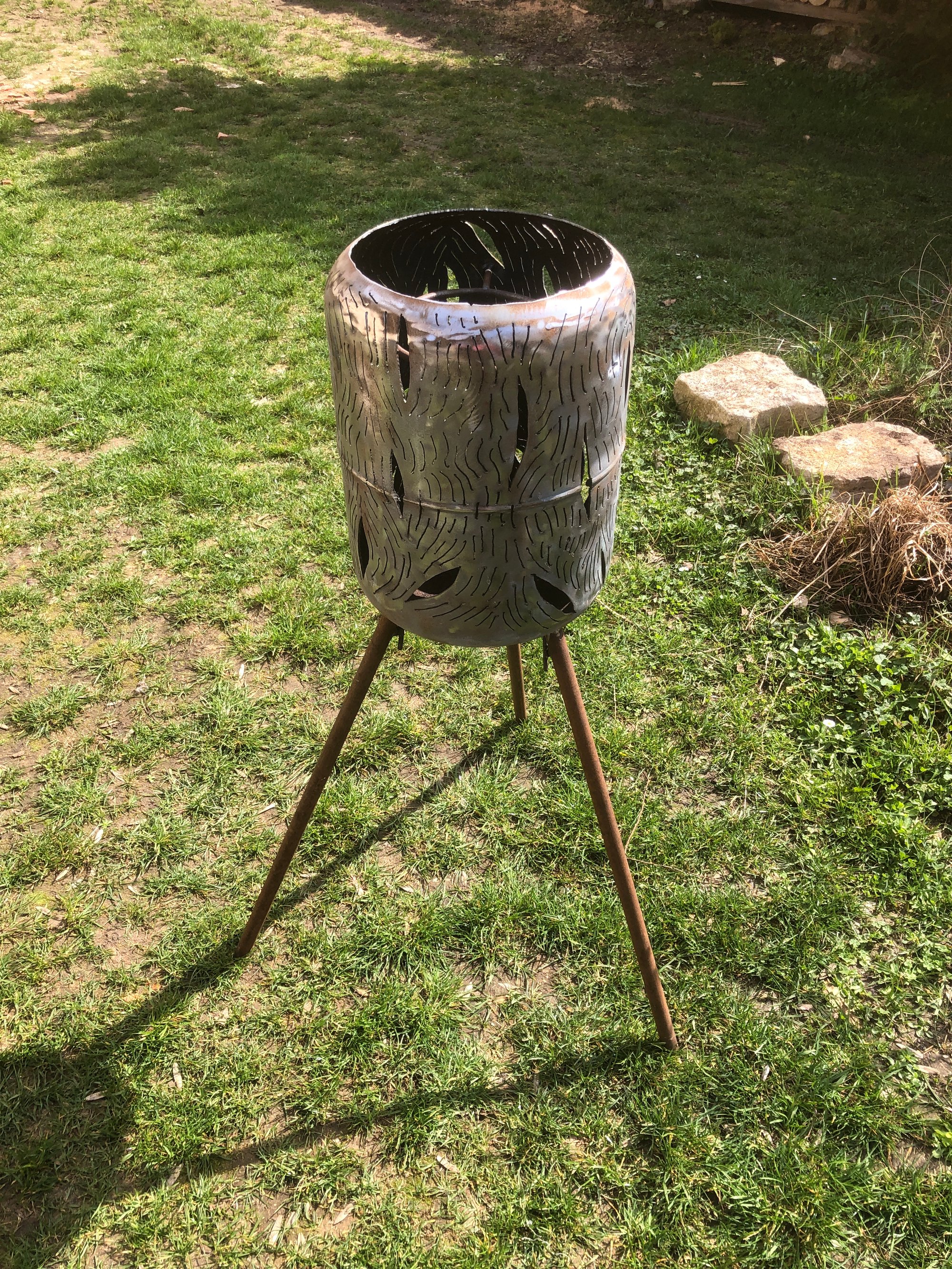 Brasero découpé au plasma dans une bouteille de gaz.