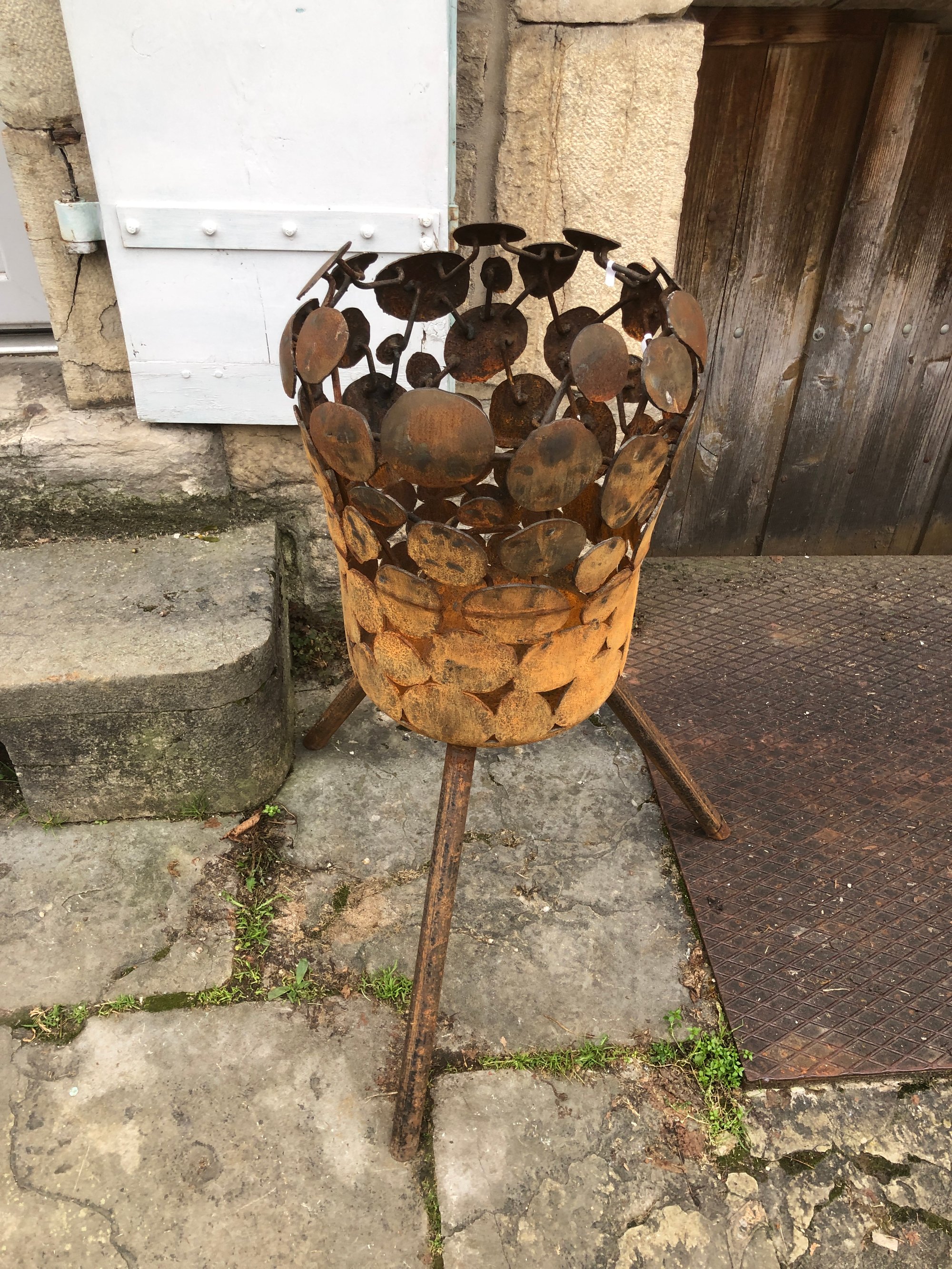 Ce brasero a été découpé dans une bouteille de gaz, puis réassemblé avec des petites baguettes d'acier de 6mm.